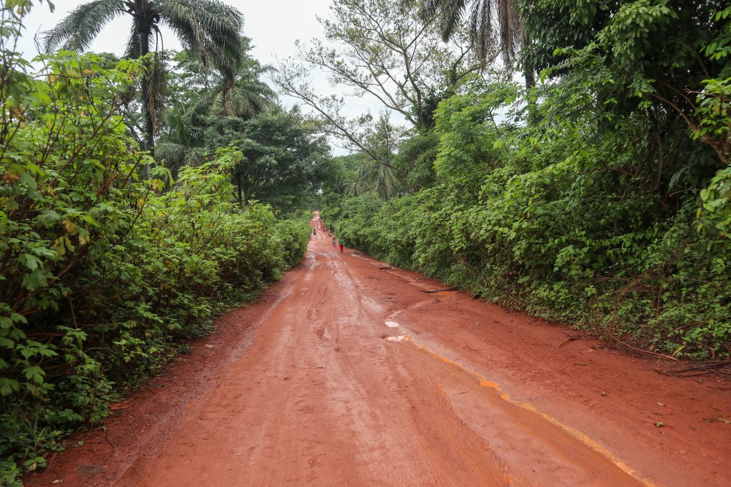 Le lendemain, j’ai compris qu’il fallait que je parte de bonheur. La route toujours mouillée me donne des difficultés, les ornières causées par les véhicules transforment la piste en pataugeoire.