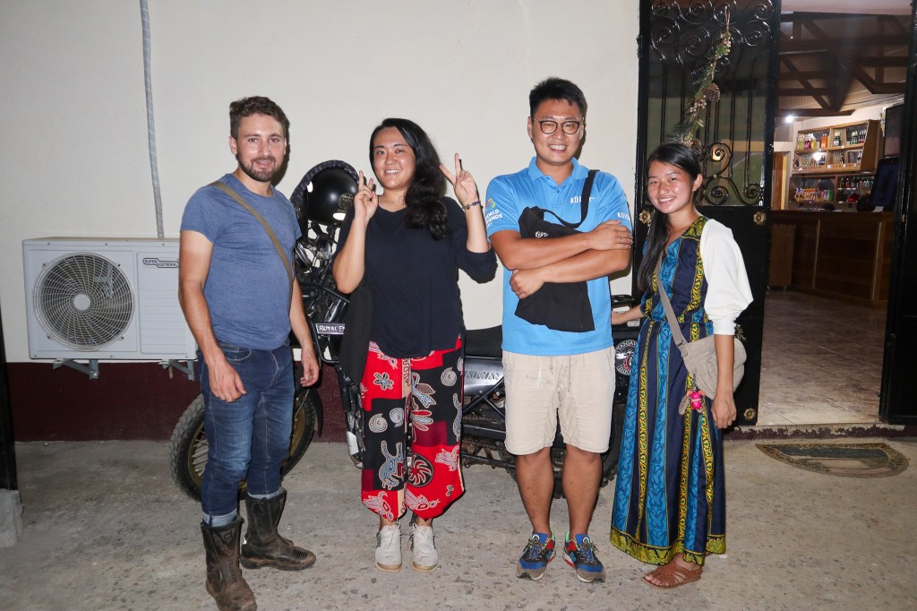 Première étape, je décide de trouver un endroit pour vidanger mon Enfield. Après avoir parcouru tant de kilomètres dans la boue, une révision s’impose pour pouvoir poursuivre ma route dans de bonnes conditions. J’enfourche ma moto pour me rendre un centre ville et trouver une endroit ou boire un café et faire la vidange de mon véhicule.